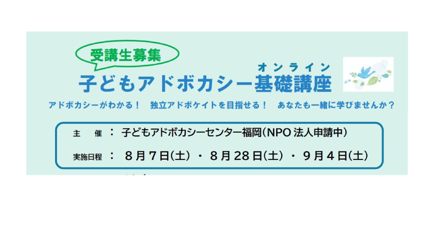 受講生を募集します! 子どもアドボケイト養成講座 6日間12講座